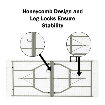 Serve guests, provide extra dining area, or expand your workspace with this Hastings Home 6-Foot Folding Table. This table opens and closes easily for convenient transport and storage, and its honeycomb-style latches prevent collapse under heavy weight. High-density polyethylene and powder-coated steel construction helps this table withstand outdoor weather when tailgating, throwing parties, or camping, while keeping it lightweight and easy to clean.