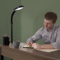 Hastings Home Natural Sunlight Desk Lamp With Adjustable Gooseneck For Home And Office – Silver