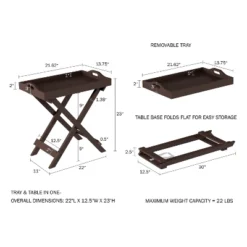 Hastings Home Folding Side Table With Removable Tray Top – Brown