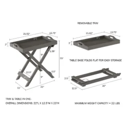 Hastings Home Folding Side Table With Removable Tray Top – Gray