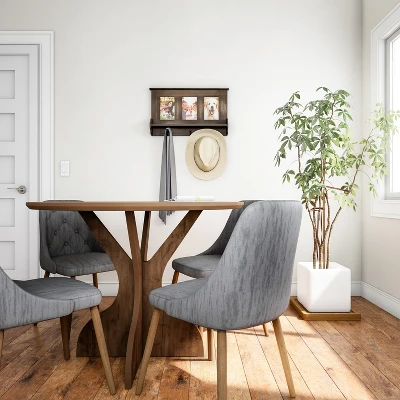 Combine the best of style and function with the Hastings Home Wall Shelf with Photo Collage Frames. The versatile accent piece allows you display your favorite pictures or artwork, while gaining practical storage space for items like keys, hats, scarves, light jackets, dog leashes, jewelry, handbags and more! The shelf even has a ledge for added storage and organization space. The distressed wood-look of the shelf complements most color palettes in any home or office, and can add a modern farmhouse or rustic feel to your decor. With 3 hanging hooks, and 3 4×6 picture frames, this piece is perfect to hang by your entryway or foyer. It’s also ideal for your kitchen, bathroom, bedroom, stairway and in spaces where you’d like a charming decorative storage. With no assembly required and the screws and anchors for mounting included, this piece will be ready to make an impact in your home in just minutes! . This product contains chemicals known to the state of California to cause cancer, birth defects, or other reproductive harm. https://www.p65warnings.ca.gov